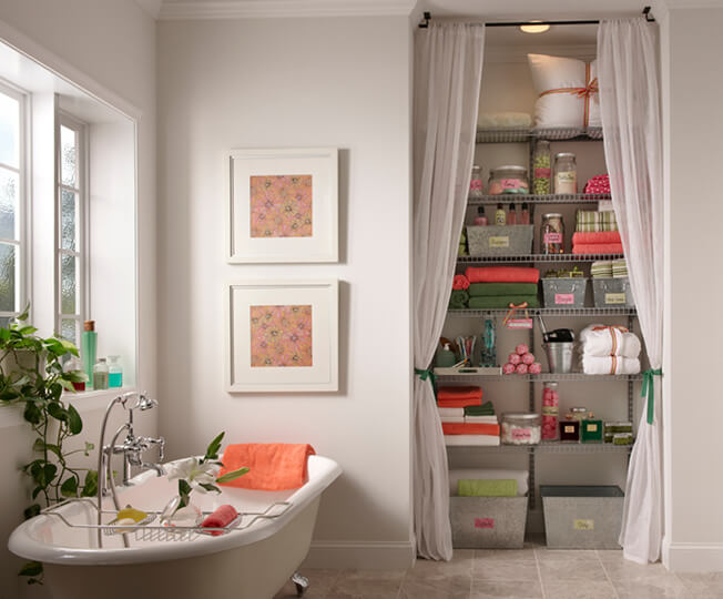 A well organized bathroom lets you luxuriate and wash away the worries of the day with ease. MasterSuite®’s accessories, including wire drawers and a hamper, are perfect for use in a linen closet. Design your MasterSuite bathroom retreat.